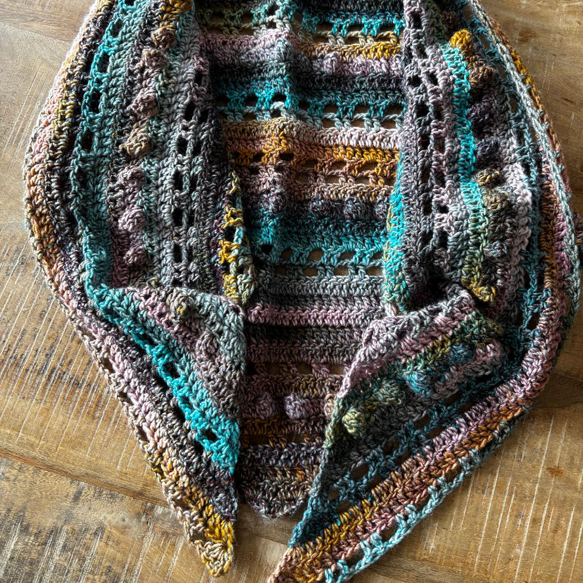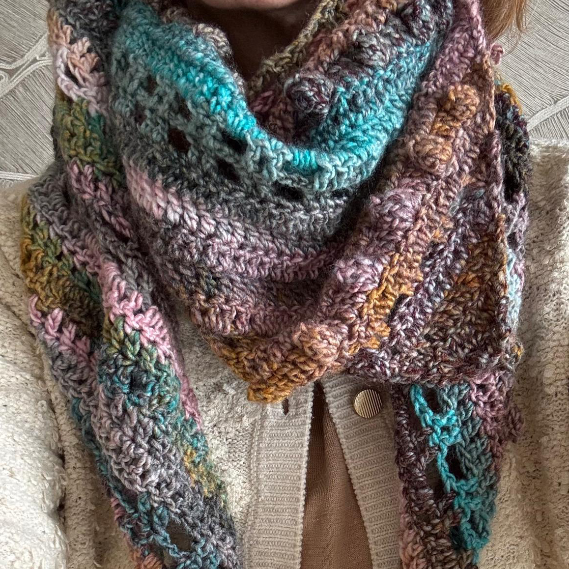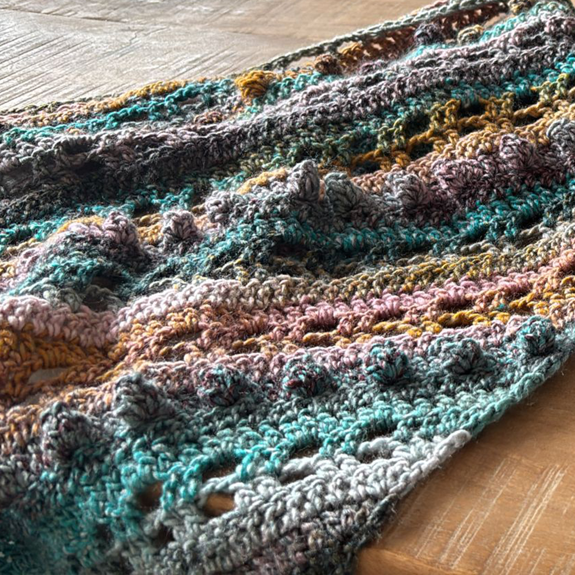 Flow is een luchtige gehaakte omslagdoek met een prachtig kleurverloop en een rustige, elegante uitstraling. Dit is zo’n project waar je helemaal in op kunt gaan: steek voor steek zie je de doek groeien en veranderen van kleur, wat het haken extra leuk maakt.